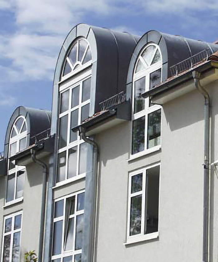 Krehle’s expertise lies in crafting custom, horizontally or vertically rounded wall coverings tailored for a variety of uses, including flat roof parapets, balcony enclosures, gable walls, and beyond.