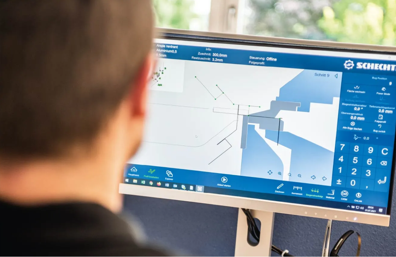 The Schechtl MAX-F is perfect where there is extensive work to be done on roofs and exteriors. The F-geometry of the bending beam, fitted as standard and providing 14 mm free space behind the pivot point, is a particular highlight. The F-geometry has many advantages: For example problem-free bending of tight cap or omega profiles and the realisation of profiles that are difficult or even impossible to produce on other machines. In addition, the F-geometry reduces the danger of collision at the bending beam.