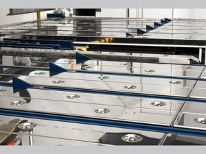 • Suction plates in gauge table, program-controlled incl. two pneumatic pop-up square arms assembled aisle side