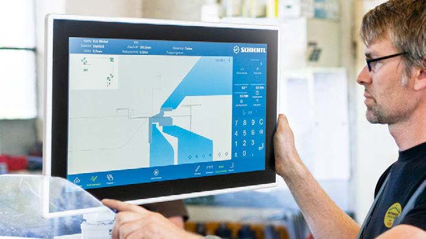 your fingertip on the display and detailed in a dimensioning menu. The control system automatically recognises how the workpiece needs to be turned and repositioned and which tools are required.