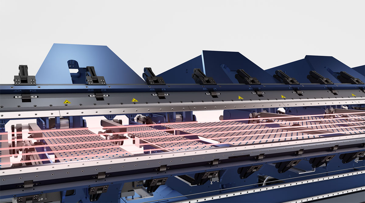Apart from its high bending performance, the model provides numerous technical possibilities that live up to the trend in every respect to produce ever more precise bent parts. Apart from the precision of the edge parts, the focus of every purchase decision is on the production time as well. During a change of the bending direction, for example, the required forward or backward movement of the clamping beam, the positioning of the back gauge and the closing of the clamping beam are carried out at the same time and in a correspondingly tight time slot. In combination with the servo technology used, these unique dynamics cause impressive and especially highly efficient movement patterns.