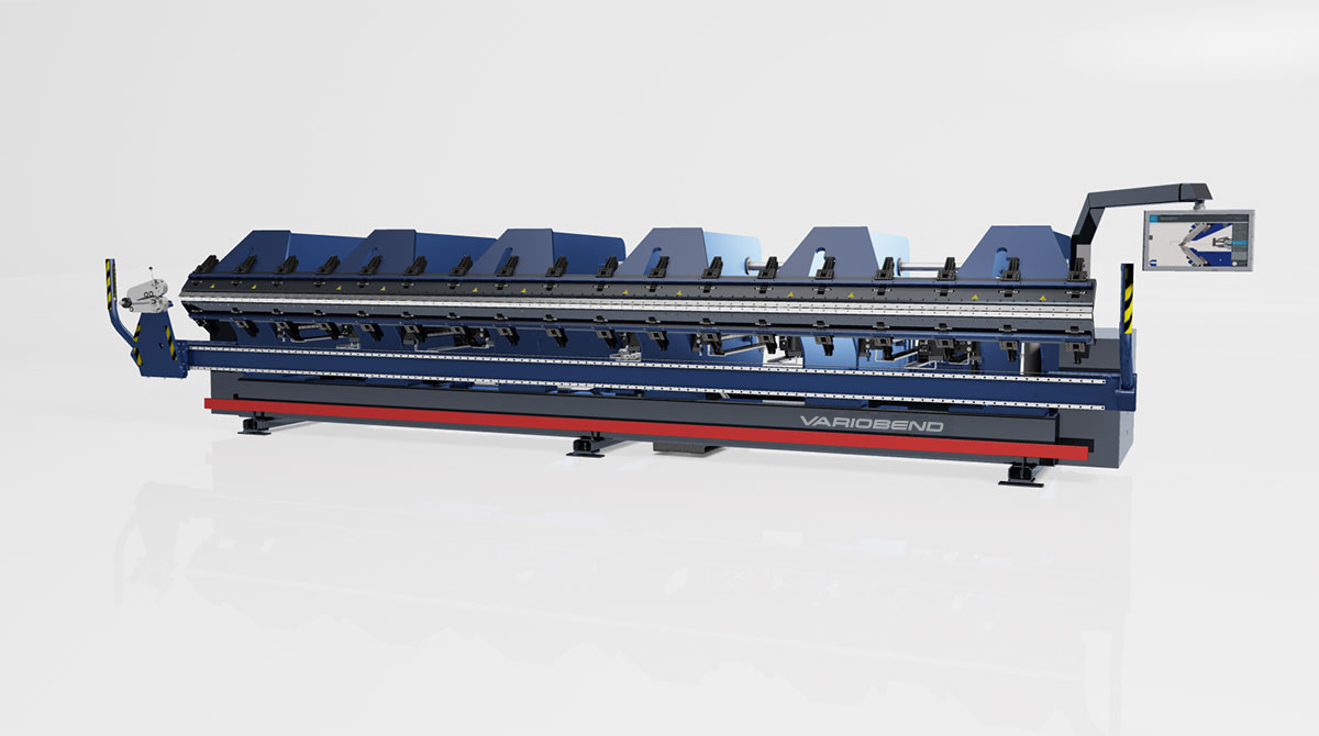 - Variobends full automated crowning system. Every stand of the machine is driven by a separate Servo-Drive. The crowning system is operated by the Variobend Touch Control. The Variobend Touch control shows the exact positioning of each stand. The operator can easily move each stand. This system ensures perfect bending results over the complete working length.