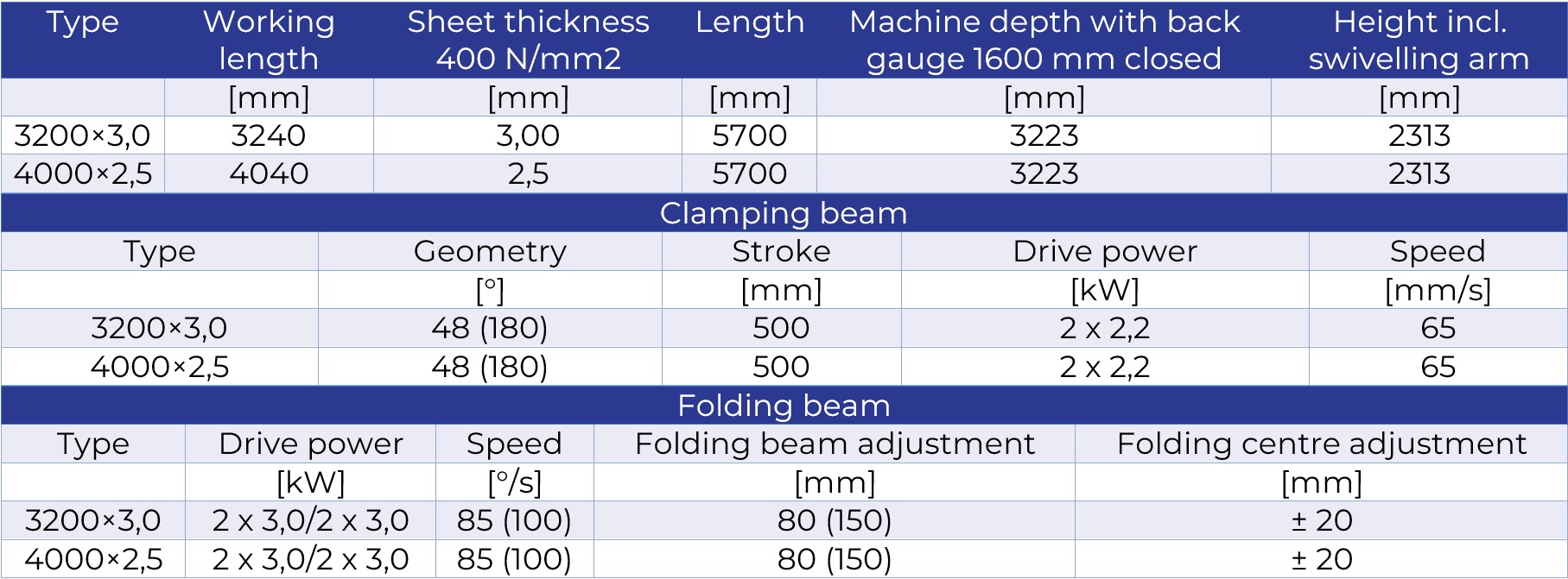 - Standard machine without folding- and clamping beam tools