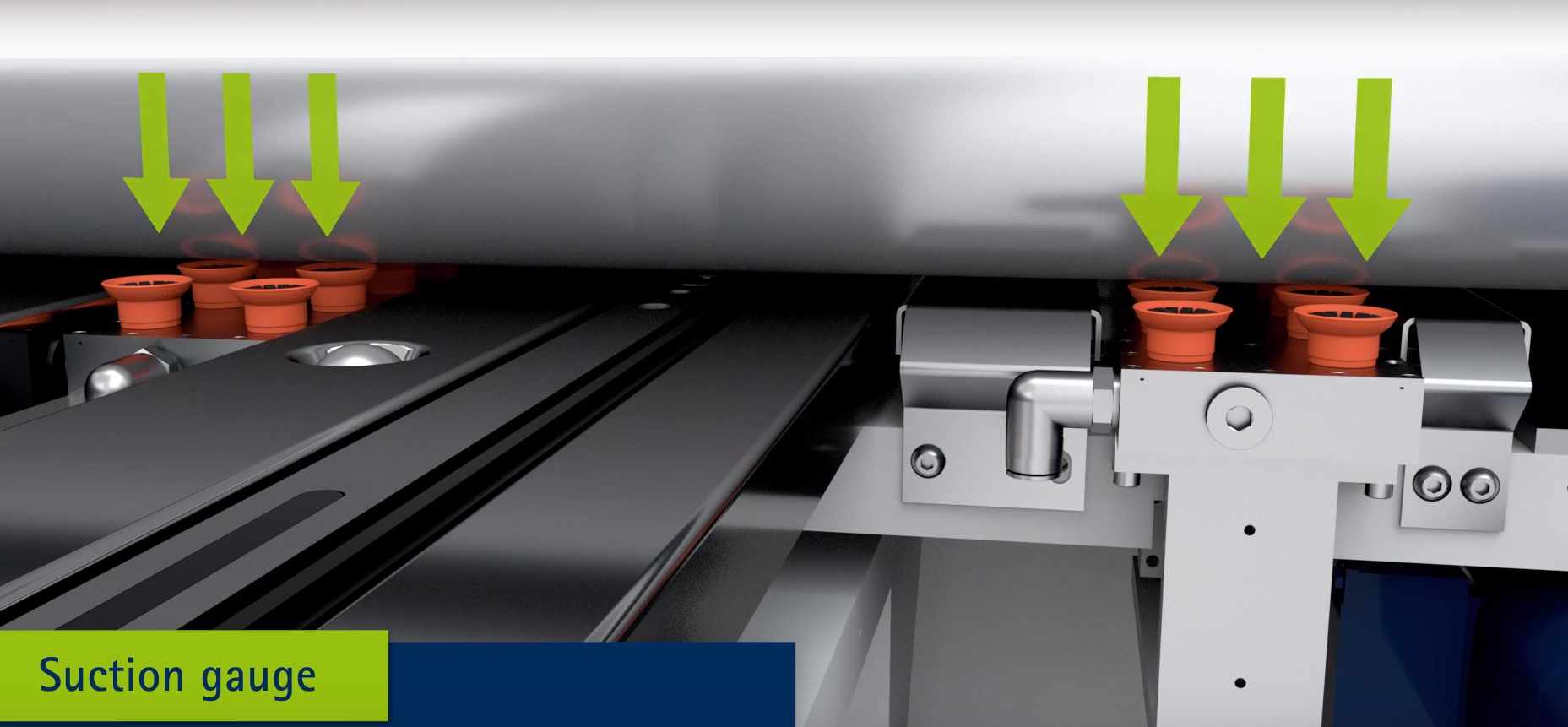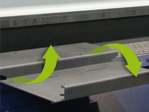 - Suction plates in gauge table with six suction units, program-controlled incl. positioning against the folding beam (only with Up and Down)